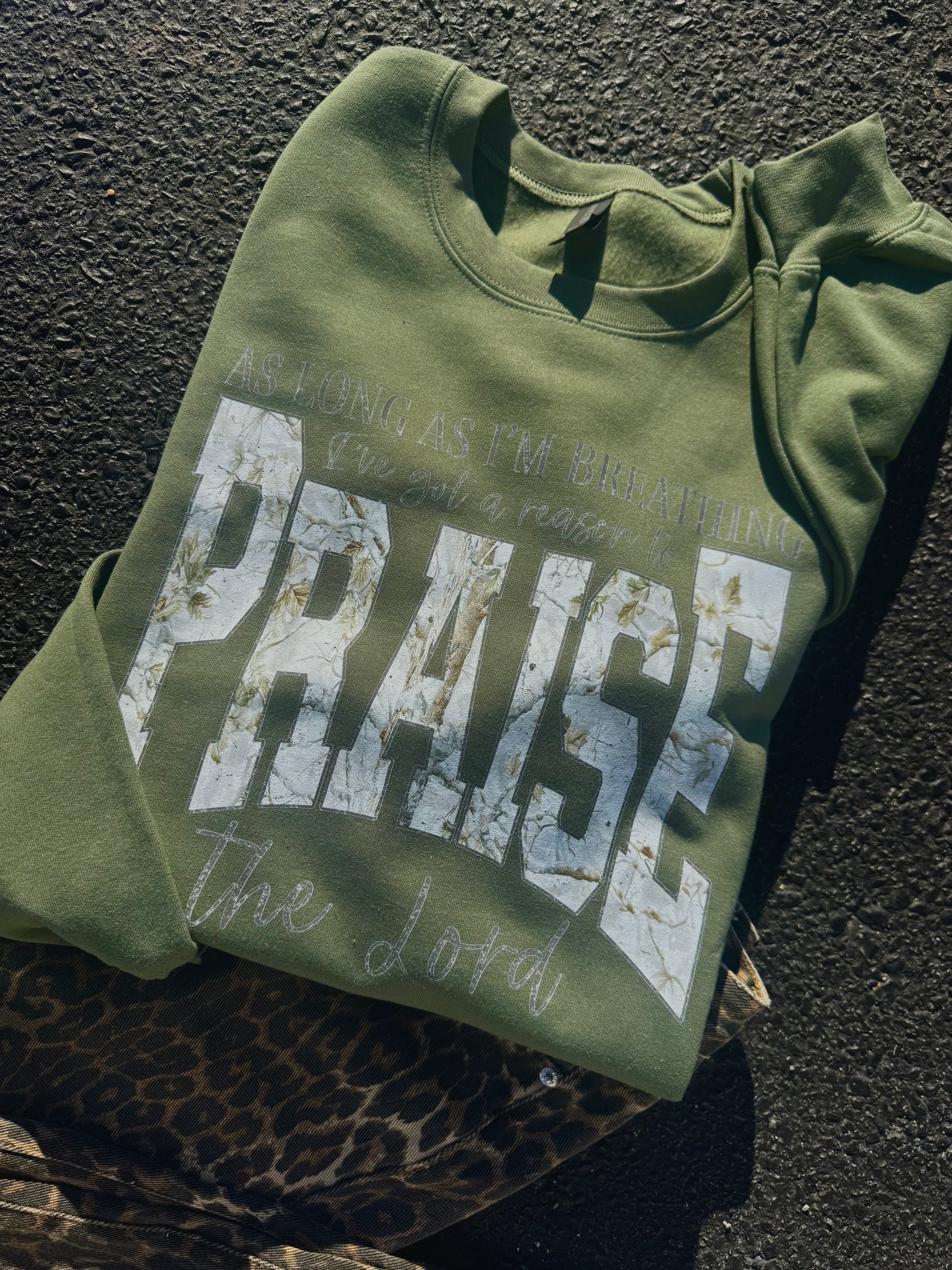 I'VE GOT A REASON TO PRAISE THE LORD CREWNECK | MILITARY GREEN